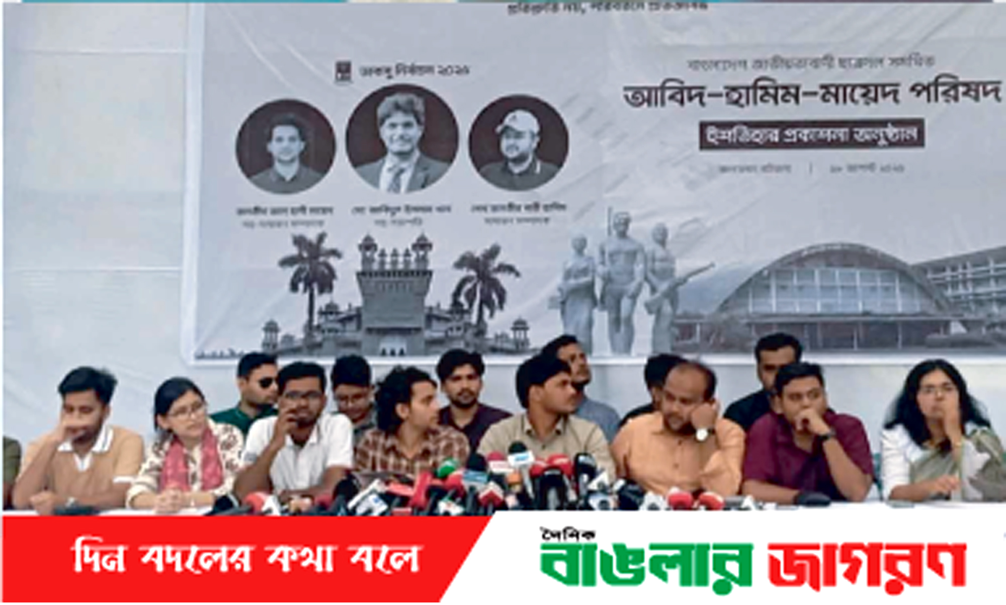 ঢাকা বিশ্ববিদ্যালয় কেন্দ্রীয় ছাত্র সংসদ (ডাকসু) নির্বাচনে ইশতেহার ঘোষণা করেছে বাংলাদেশ জাতীয়তাবাদী ছাত্রদল সমর্থিত মো. আবিদুল ইসলাম খান (ভিপি), শেখ তানভীর বারী হামিম (জিএস) ও তানভীর আল হাদী মায়েদ (এজিএস) পরিষদ।