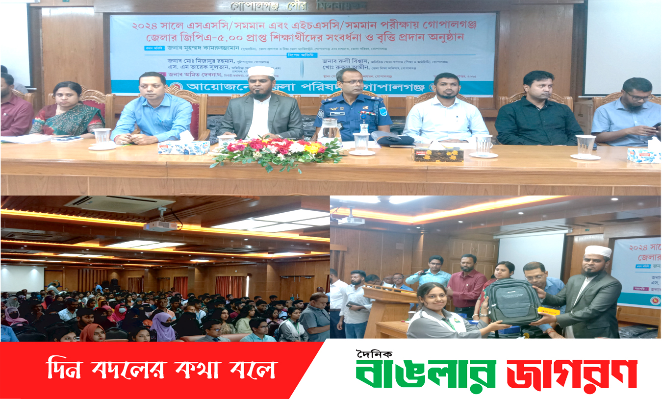 শেখ ফরিদ আহমেদ, গোপালগঞ্জ : গোপালগঞ্জে ২০২৪ সালের এসএসসি ও এইচএসসি/সমমান পরীক্ষায় জিপিএ-৫ প্রাপ্ত কৃতি শিক্ষার্থীদের সংবর্ধনা ও বৃত্তি প্রদান করা হয়েছে। বৃহস্পতিবার (১১ সেপ্টেম্বর ২০২৫) সকাল ১০টায় জেলা পরিষদের আয়োজনে গোপালগঞ্জ পৌর মিলনায়তনে এ অনুষ্ঠান অনুষ্ঠিত হয়।