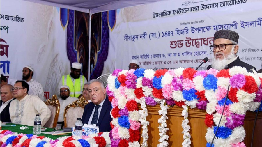 ঢাকায় বায়তুল মুকাররম জাতীয় মসজিদের পূর্ব গেটে পবিত্র ঈদে মিলাদুন্নবি (সা.) ১৪৪৭ হিজরি উপলক্ষ্যে মাসব্যাপী ইসলামী বইমেলার উদ্বোধন অনুষ্ঠানে প্রধান অতিথির বক্তব্যে উপদেষ্টা একথা বলেন।