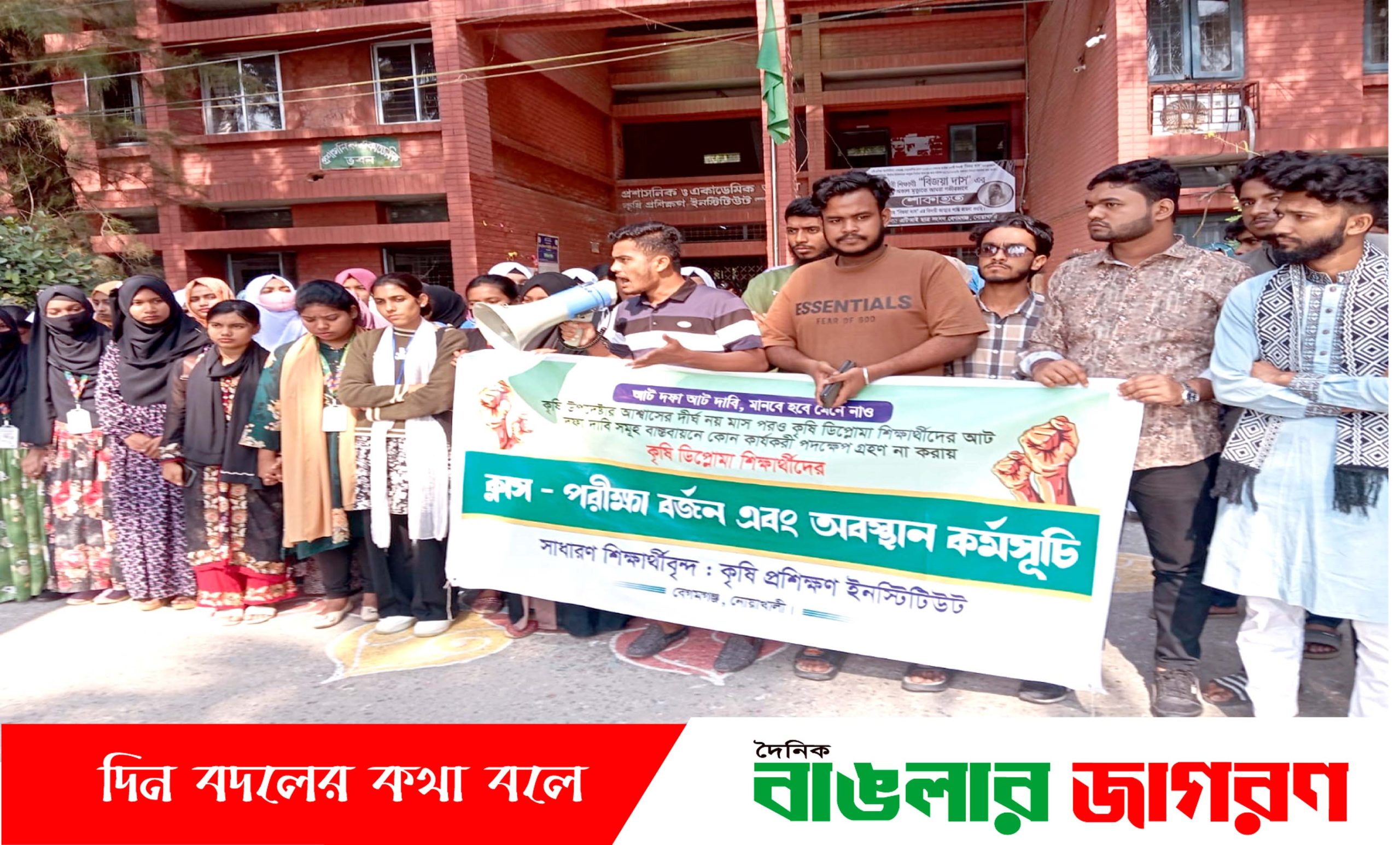 নোয়াখালী কৃষি প্রশিক্ষণ ইনস্টিটিউটের (এটিআই) শিক্ষার্থীরা আট দফা দাবিতে ক্লাস-পরীক্ষা বর্জন করে অবস্থান কর্মসূচি পালন করেছেন।