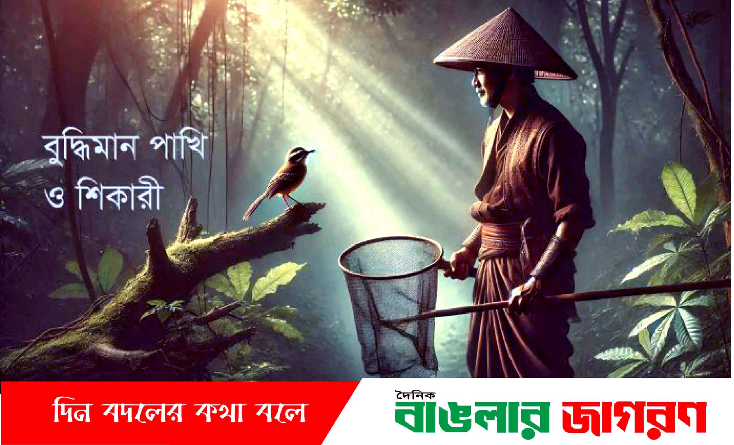 শিকারি রাজি হওয়ায় পাখিটি বলল, আমি প্রথম বাক্যটি বলব তোমার হাতের ওপর বসে, দ্বিতীয় বাক্যটি বলব এই গাছের ডালে বসে, তৃতীয় বাক্যটি বলব গাছের মগডালে বসে। শিকারি বলল, ঠিক আছে।