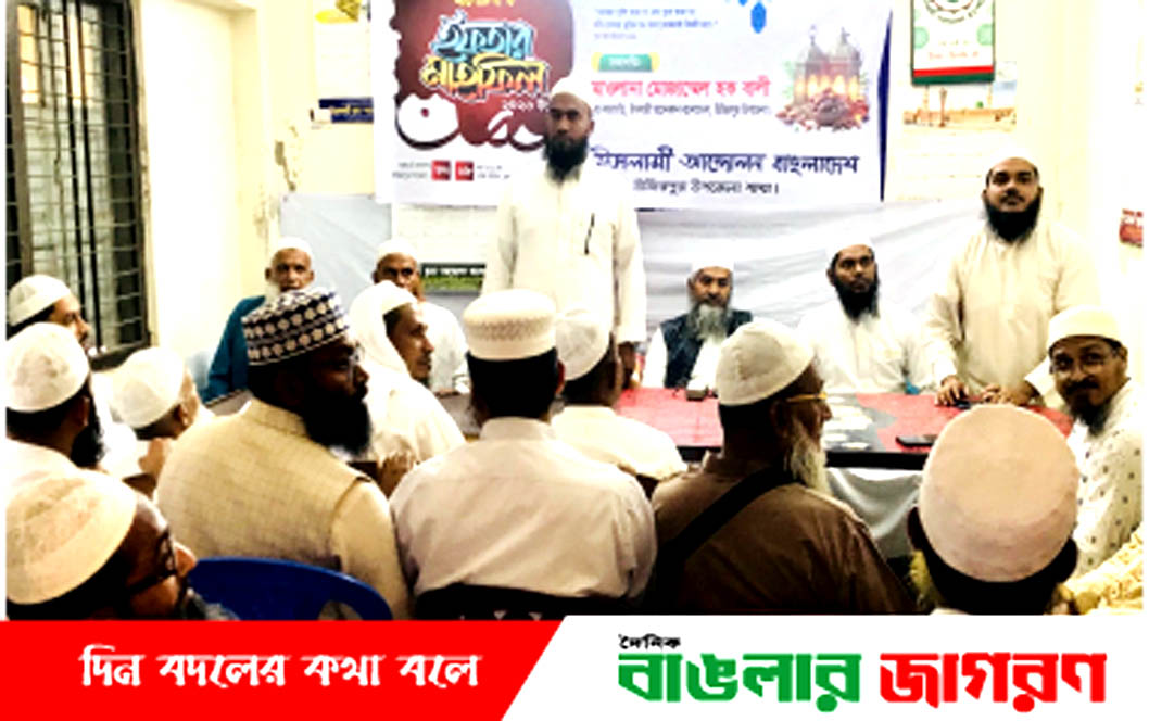 উপজেলা ইসলামী আন্দোলনের সভাপতি মাওলানা মোজাম্মেল হকের সভাপতিত্বে অনুষ্ঠিত আলোচনা সভা ও ইফতার মাহফিলে বক্তব্য রাখেন উপজেলা ইসলামী আন্দোলনের সেক্রেটারি মাওলানা আঃ হক, সহকারী সেক্রেটারি মুফতি আব্দুল আজিজ, যুব আন্দোলনের সভাপতি ডিএম আল আমিন, ওলামা আইম্মা পরিষদের সাধারণ সম্পাদক মুফতি নাকিবুল ইসলাম, মুজাহিদ কমিটির সাধারণ সম্পাদক মাওলানা আলাউদ্দিন খান, শ্রমিক আন্দোলনের সহ-সভাপতি মোঃ ইউনুস এবং উপজেলা ছাত্র আন্দোলনের সভাপতি মোঃ আরাফাত খান। এ সময় বিভিন্ন ইউনিয়ন কমিটির নেতৃবৃন্দ উপস্থিত ছিলেন।