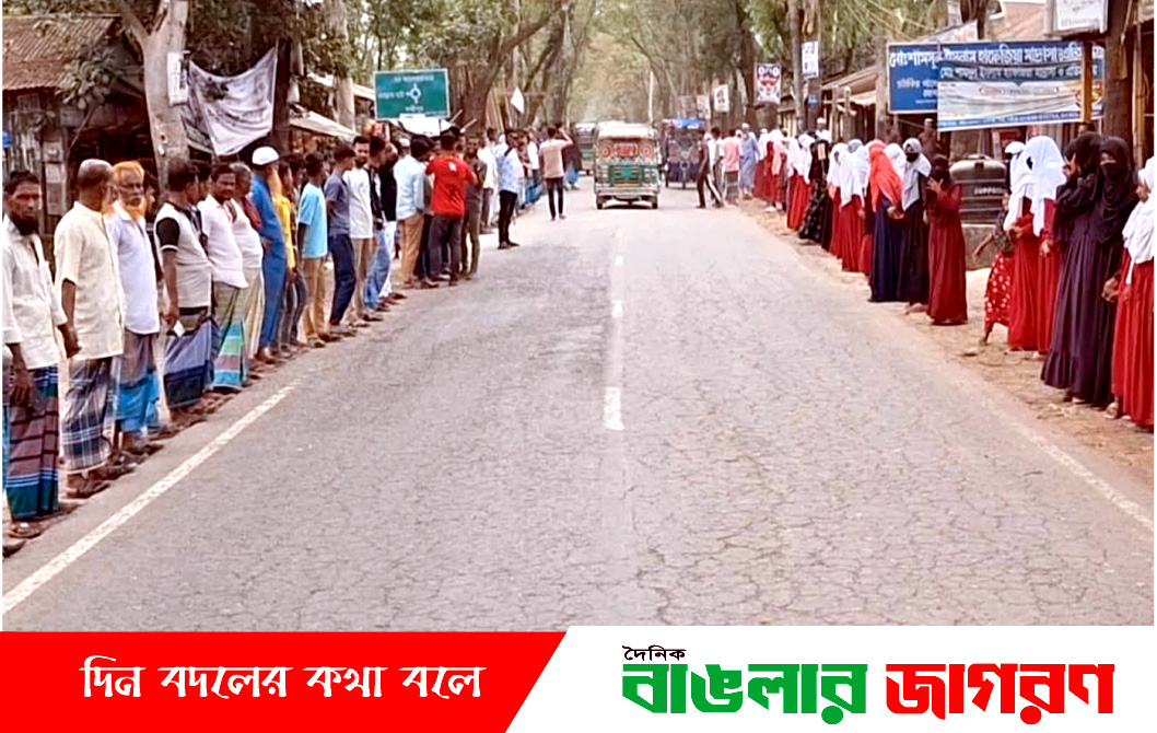 ঘন্টাব্যাপী এই মানববন্ধনে এলাকাবাসীর সঙ্গে অংশ নেন স্থানীয় ২টি মাদ্রাসার শিক্ষক ও শিক্ষার্থীরা। এ সময় তারা লক্ষ্মীপুর-রামগতি সড়ক অবরুদ্ধ করে রাখেন।