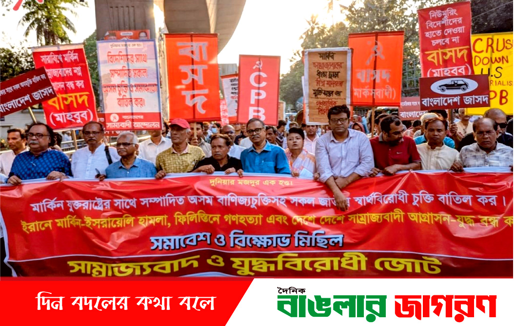 মার্কিন যুক্তরাষ্ট্রের সঙ্গে স্বাক্ষরিত ‘অসম বাণিজ্য চুক্তি’সহ সকল জাতীয় স্বার্থবিরোধী চুক্তি বাতিলের দাবি জানিয়েছে বামপন্থি রাজনৈতিক দলগুলোর সমন্বয়ে গঠিত সাম্রাজ্যবাদ ও যুদ্ধবিরোধী জোট। একই সঙ্গে চুক্তিটি অবিলম্বে সংসদে এজেন্ডাভুক্ত করে আলোচনার আহ্বান জানানো হয়েছে।