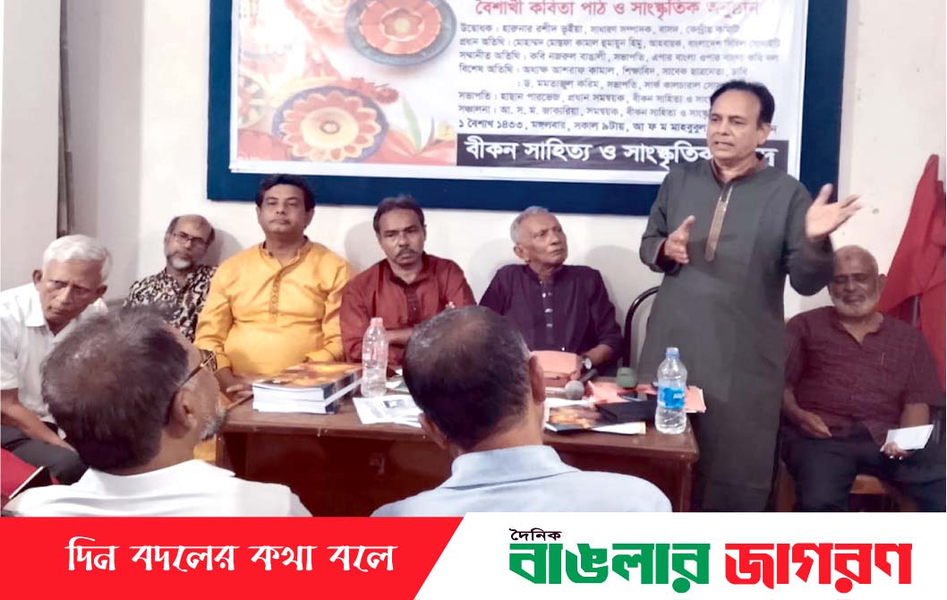 নববর্ষের প্রথম দিন পহেলা বৈশাখ উদযাপন উপলক্ষে বর্ণাঢ্য আয়োজনে বৈশাখী কবিতা পাঠ ও সাংস্কৃতিক অনুষ্ঠান করেছে বীকন সাহিত্য ও সাংস্কৃতিক কেন্দ্র। মঙ্গলবার (১৪ এপ্রিল) সকাল ৯টায় আ ফ ম মাহবুবুল হক মিলনায়তনে অনুষ্ঠিত এ আয়োজনে সভাপতিত্ব করেন সংগঠনের প্রধান সমন্বয়ক কবি হাসান পারভেজ।