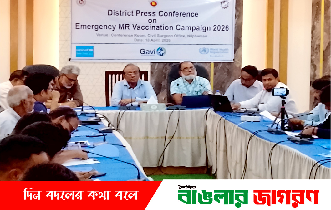 হাম-রুবেলা টিকাদান ক্যাম্পেইন-২০২৬ উপলক্ষে নীলফামারী স্বাস্থ্য বিভাগের আয়োজনে জেলা পর্যায়ে সংবাদ সম্মেলন অনুষ্ঠিত হয়েছে।