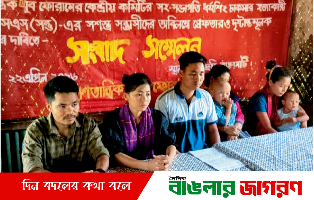 সংবাদ সম্মেলনে গণতান্ত্রিক যুব ফোরামের সাধারণ সম্পাদক থুইনুমং মারমা, পিসিপির সংস্কৃতি বিষয়ক সম্পাদক চয়ন চাকমা এবং হিল উইমেন্স ফেডারেশনের সদস্য রিপনা চাকমা বক্তব্য দেন। এ সময় নারী সংঘের সহ-সভাপতি রিনিশা চাকমা ও নিহতের স্ত্রী রুনা চাকমাও উপস্থিত ছিলেন।