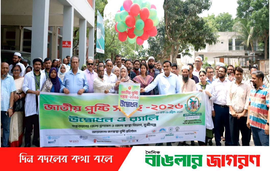 ২৩ এপ্রিল থেকে ২৯ এপ্রিল ২০২৬ তারিখে মুন্সীগঞ্জ জেলা প্রশাসন ও জেলা স্বাস্থ্য বিভাগের আয়োজনে যথাযোগ্য মর্যাদায় পালিত হচ্ছে জাতীয় পুষ্টি সপ্তাহ-২০২৬।